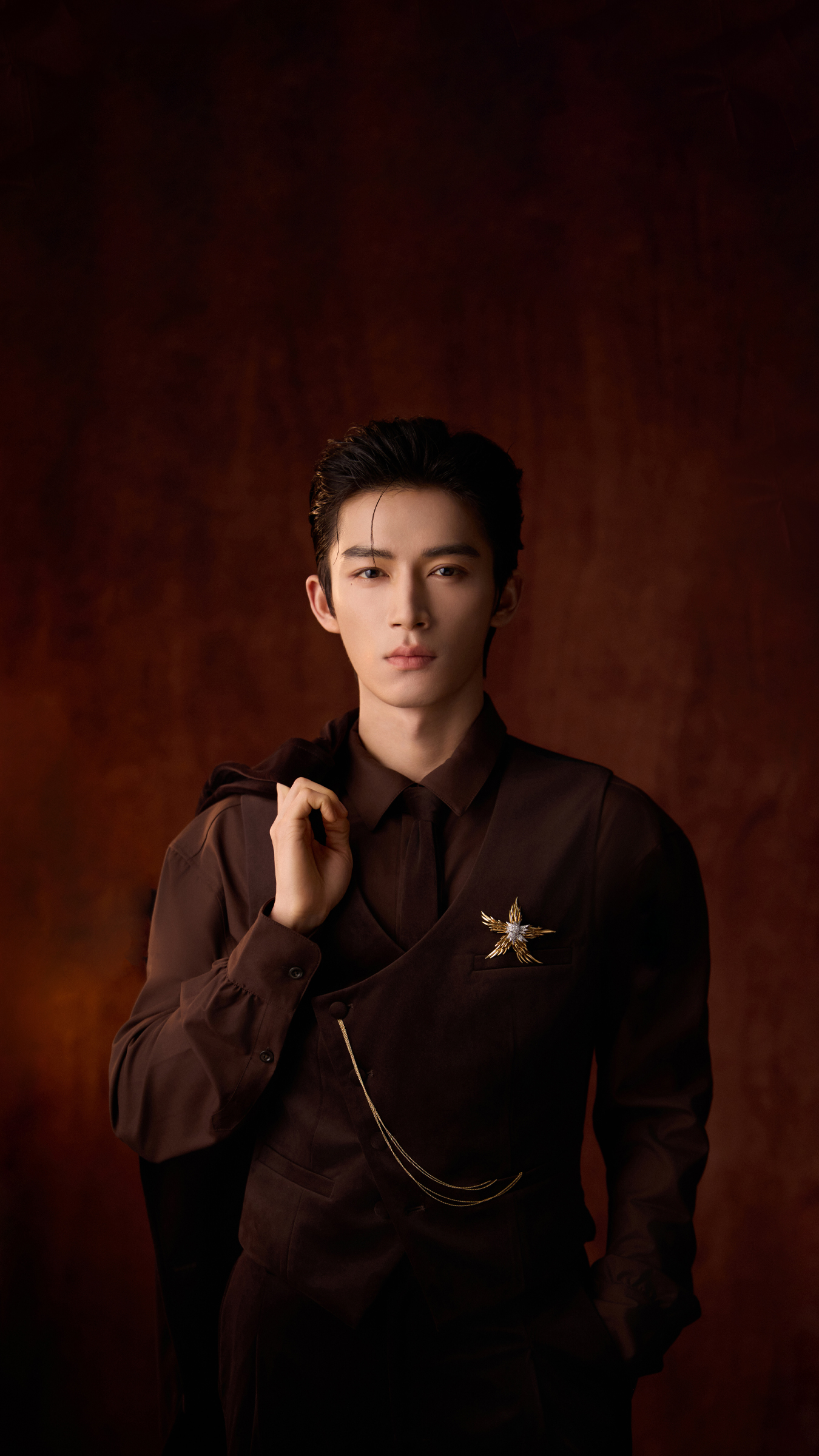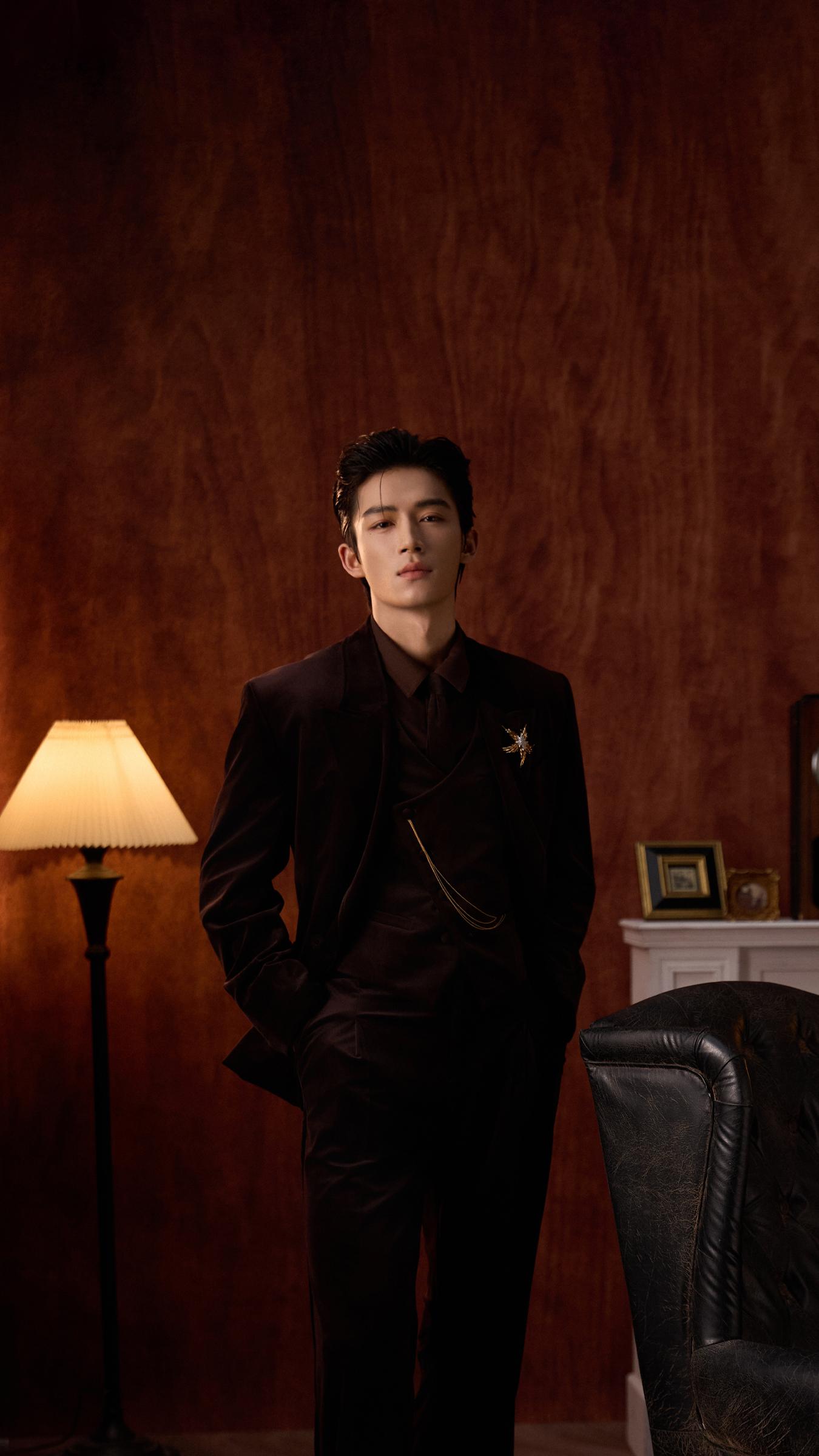更绝的是,整组造型没有一丝用力过猛的痕迹。丝绒的质感、光影的层次、甚至他微微扬起的下巴角度,全都恰到好处。仿佛他生来就该站在那个年代的壁炉前,手执高脚杯,用低沉嗓音念一句:“今晚月色真美。”但下一秒,他又可能掏出手机自拍一张发微博,配文“今日份复古营业”。这种反差萌,谁顶得住啊?