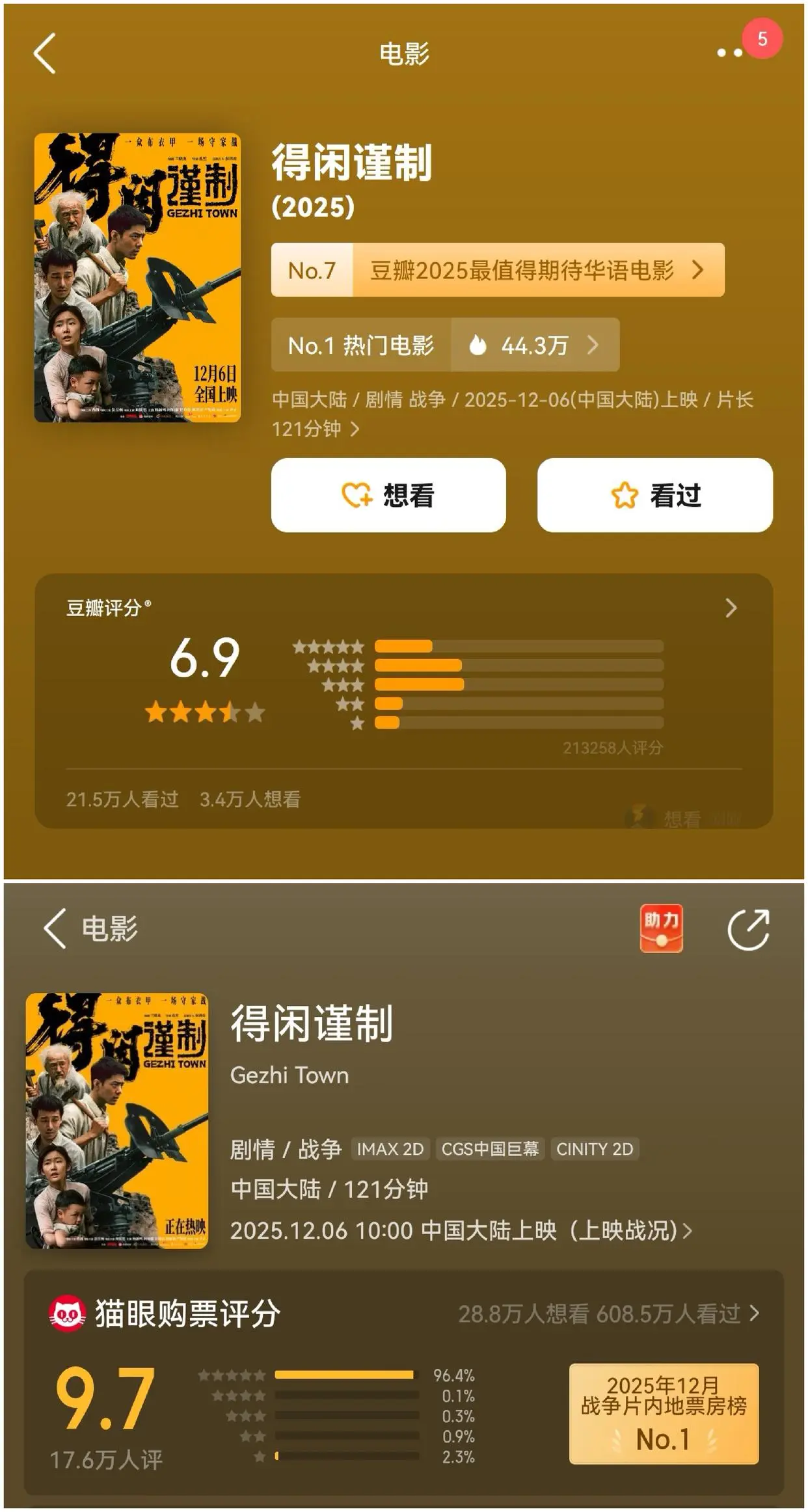 豆瓣开分6.9,猫眼评分9.7,肖战主演的电影《得闲谨制》应该是多少分?近期,一部热映电影的评分争议,将电影评分体系的公信力问题再次推至风口浪尖。